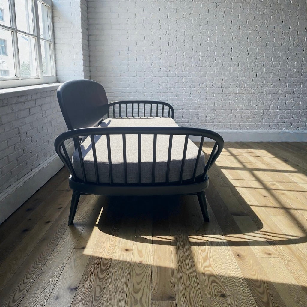The solid wood frame has been meticulously prepared and finished in black resin based Fusion™ Mineral Paint for a deep, durable, low-sheen look that beautifully highlights the sculptural Ercol silhouette. Every stage has been done properly – no shortcuts, no quick flips.